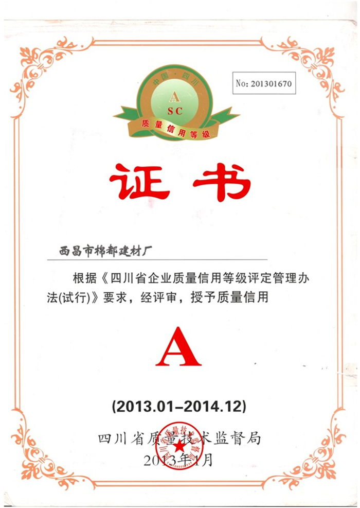公司榮獲質(zhì)量信用A級(jí)證書